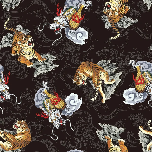 . Traditional Japanese Tattoo Design For Back Body Tiger Face With Old Dragon On Cloud Background Stock Vector Illustration Of Graphic Ancient 112017384 Updated 40 Majestic Japanese Tiger Tattoo Designs August 2020 Japanese Tattoo Sleeve Koi Dragon Tiger 02 Joe Haasch Tattoo