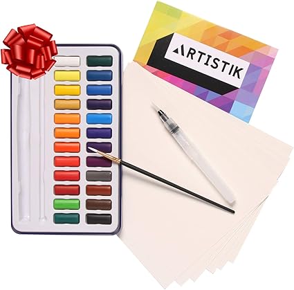 Amazon.com: Premium Watercolor Paint Set - 24 Vibrant Colors Pan Pallete Paints Travel Set and Watercolor Painting Set for Artists, Beginners, Kids, Adults and Professionals