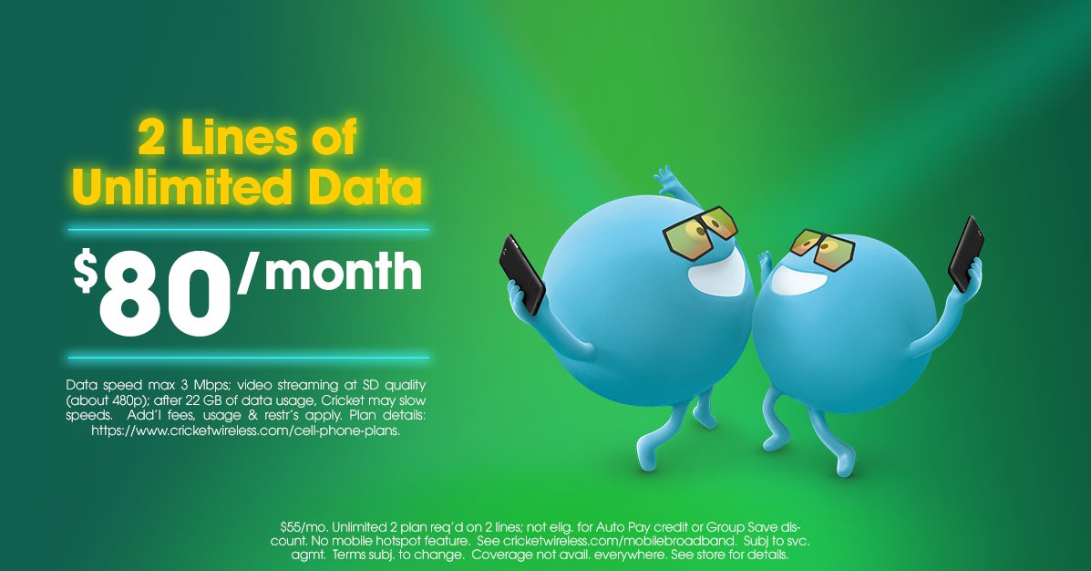 Cricket Wireless On Twitter Now We Re Doubling The Fun Get Two Lines On The Cricket Unlimited 2 Plan For 80 Mo Https T Co Gdchwux8on Https T Co 6zkow6cg9y Twitter